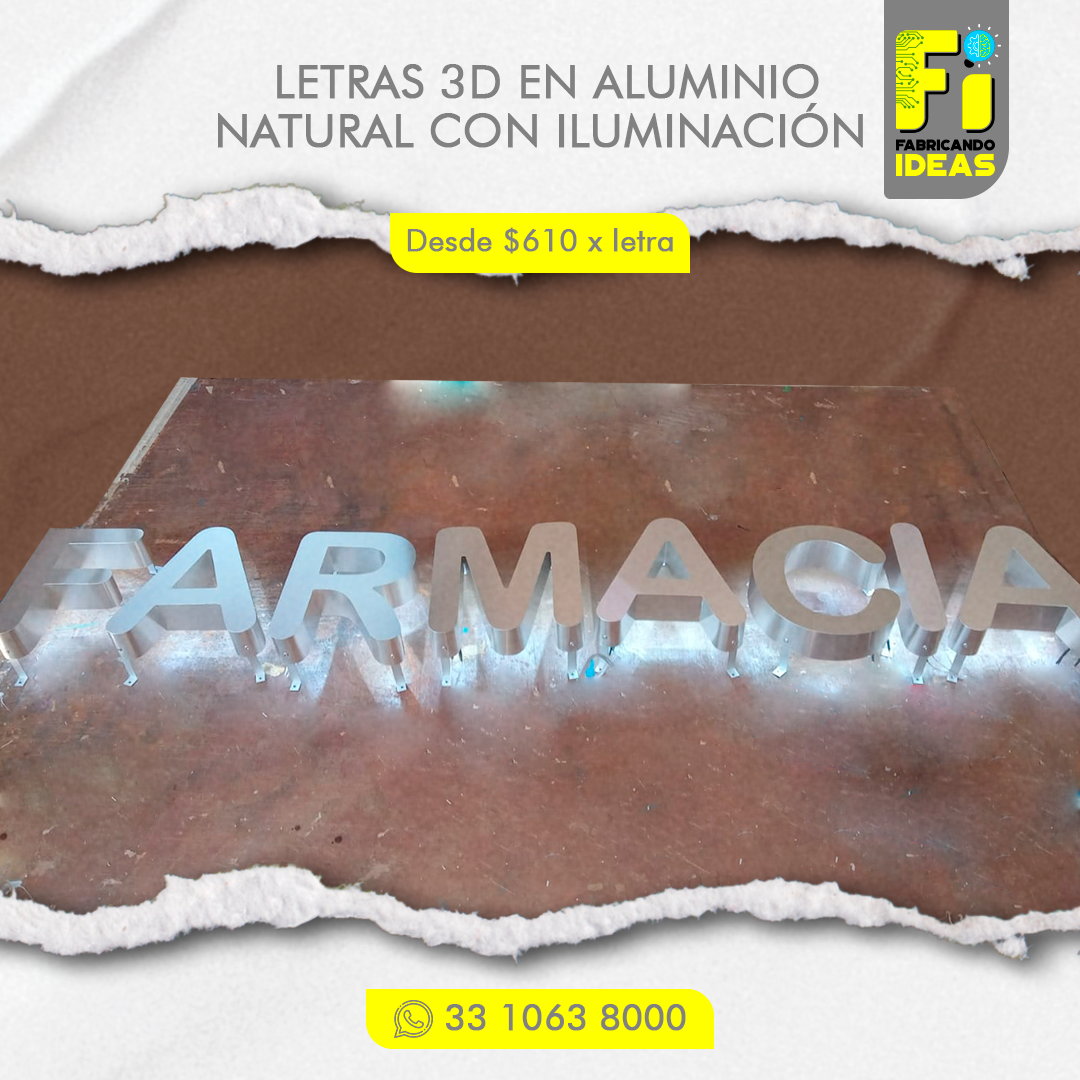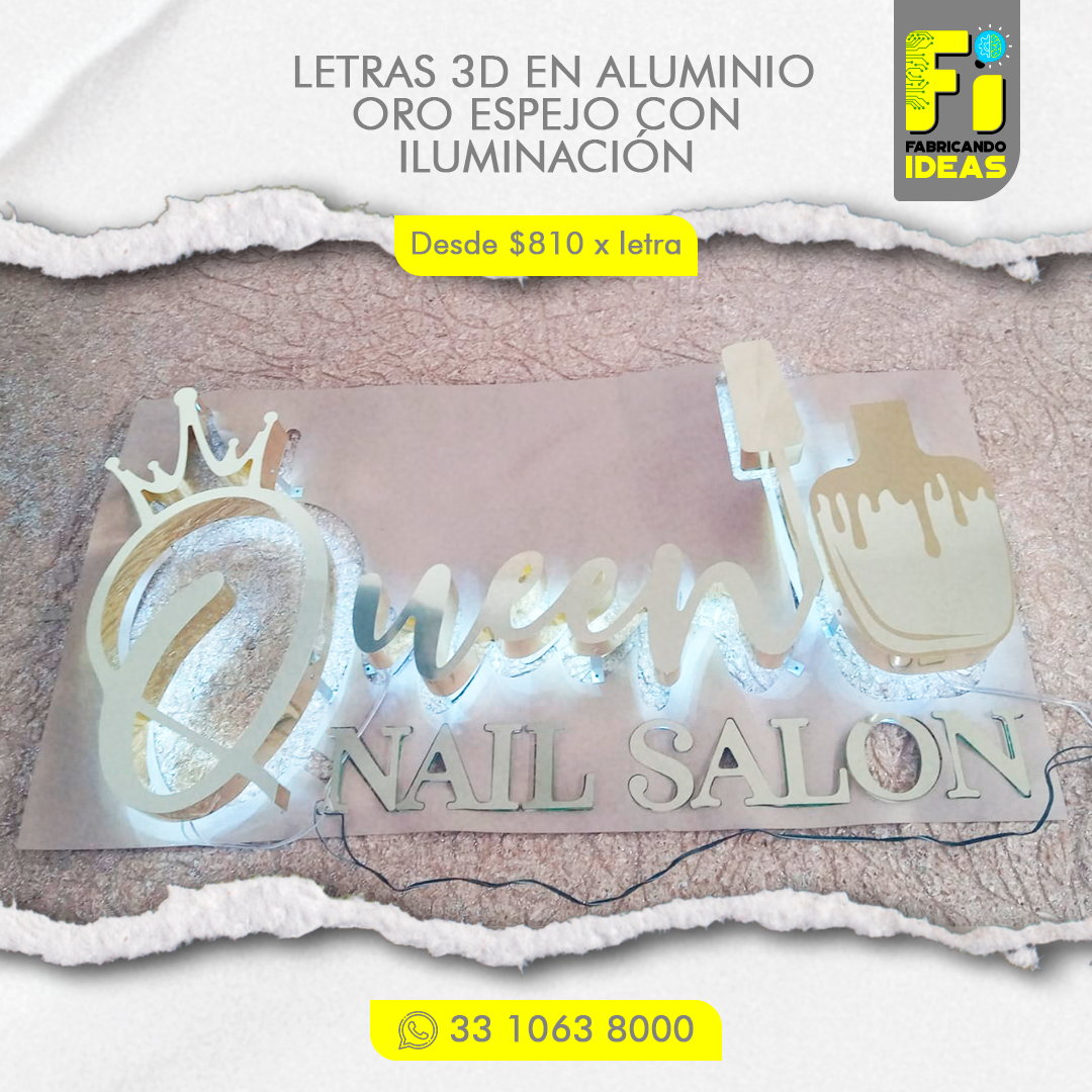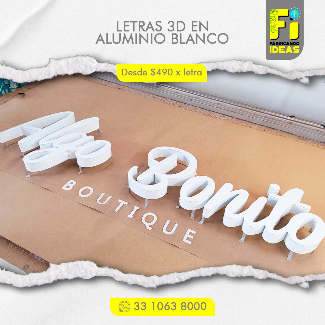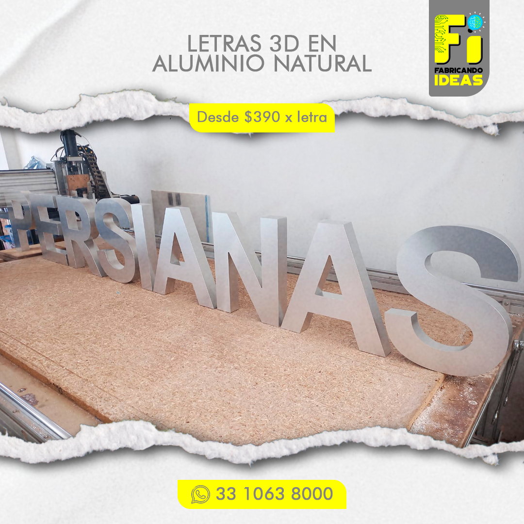 - La medida mínima para fabricar letras en 3D es de 20 cm de altura.