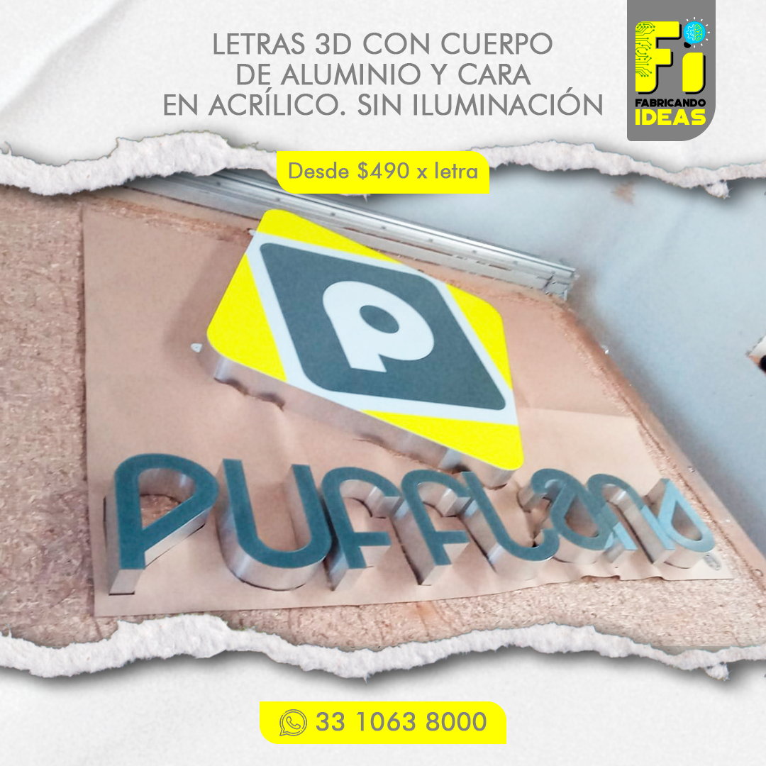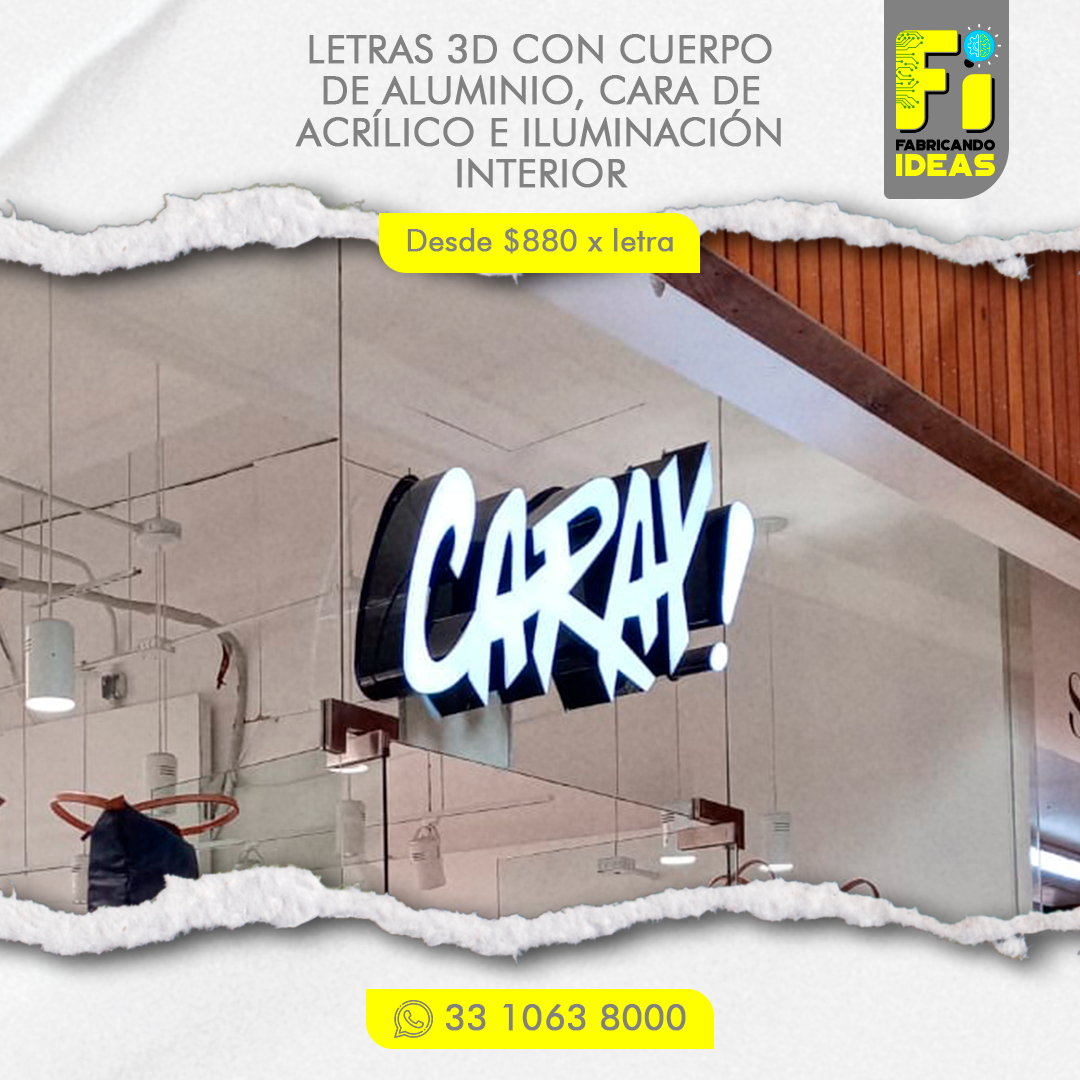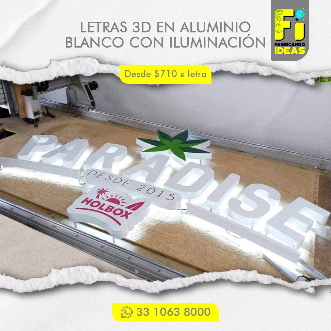 - La medida mínima para fabricar letras en 3D es de 20 cm de altura.