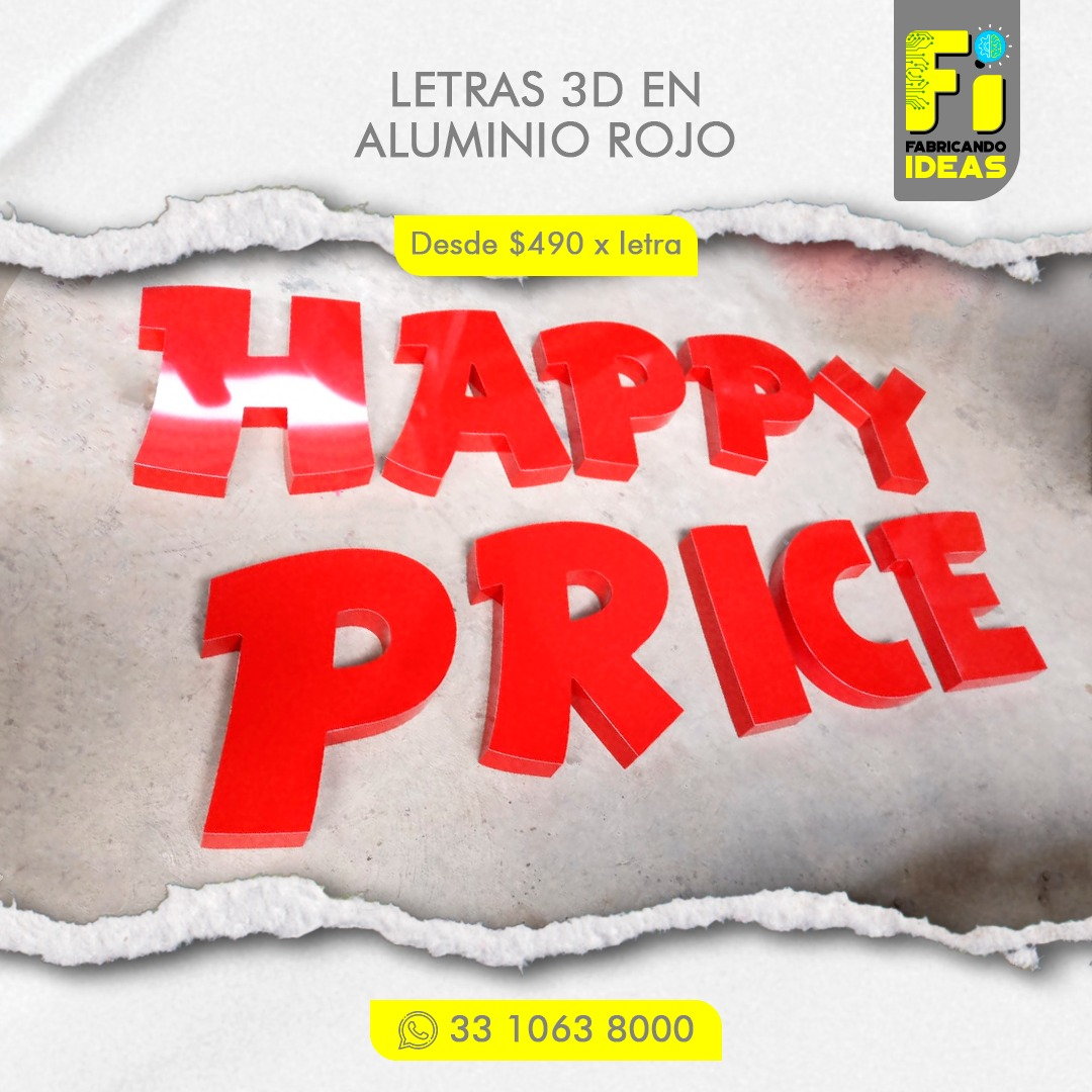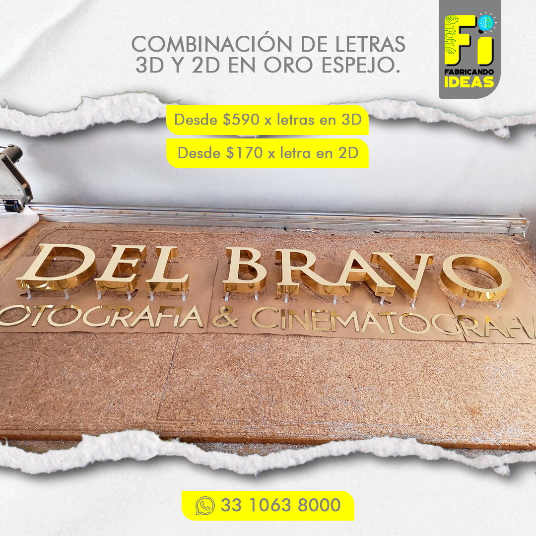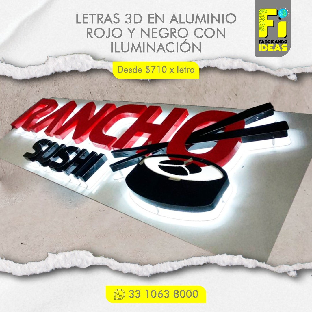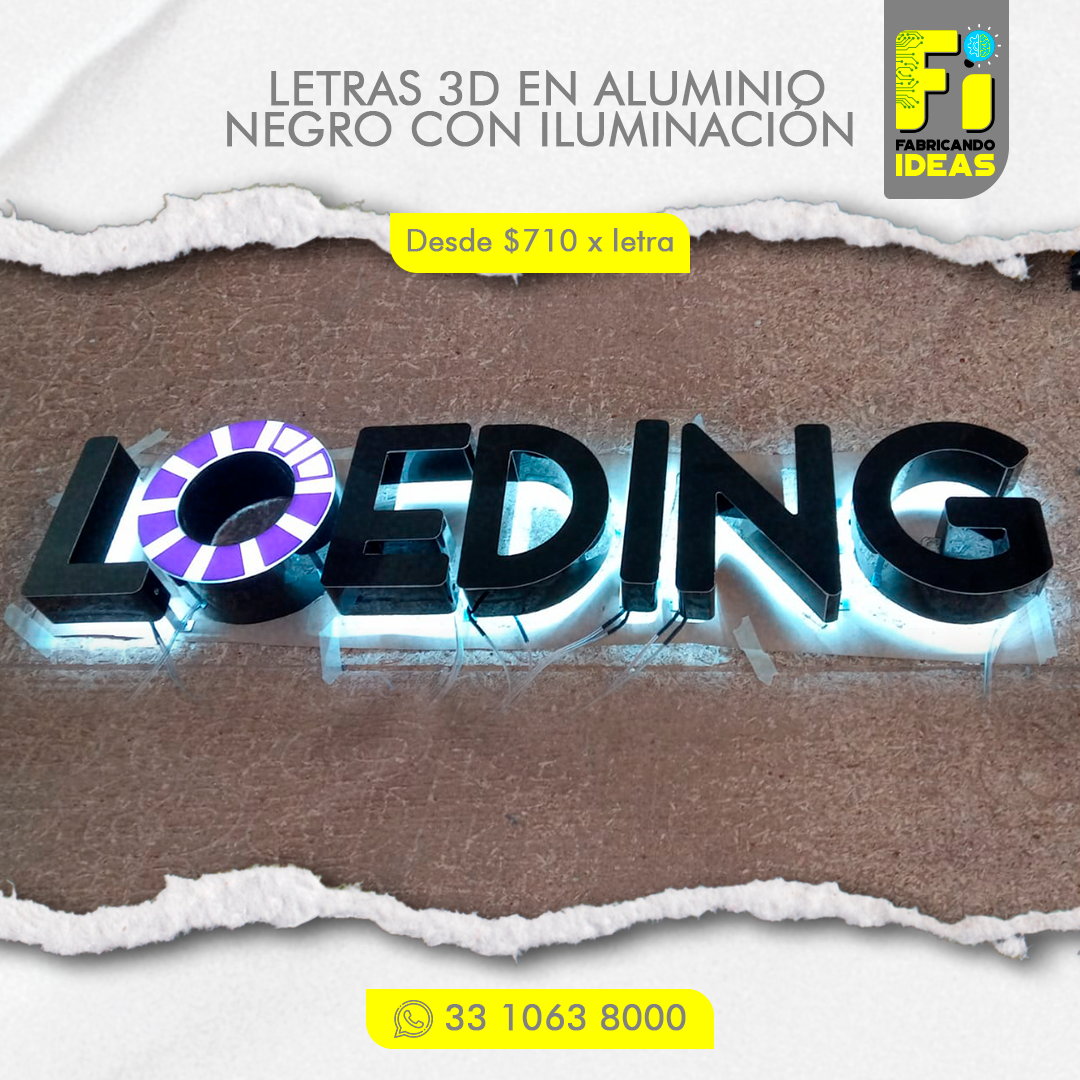 - La medida mínima para fabricar letras en 3D es de 20 cm de altura.